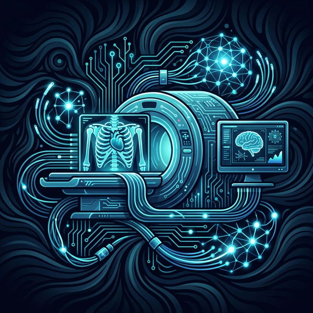 Diagnostic AI rivals specialists in imaging. Administrative burden collapsing. Physical patient care remains the hard constraint. Radiology is ground zero for clinical AI impact.